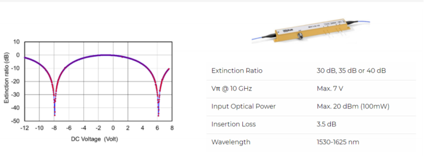 1550nm波段,10GHz/20GHz高消光比强度调制器(ER> 30,35,40dB)