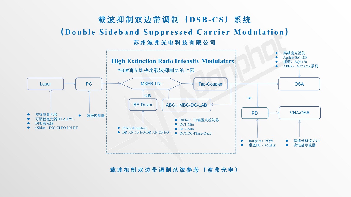 基于高消光比强度调制器的双边带抑制载波传输系统(DSB-CS)