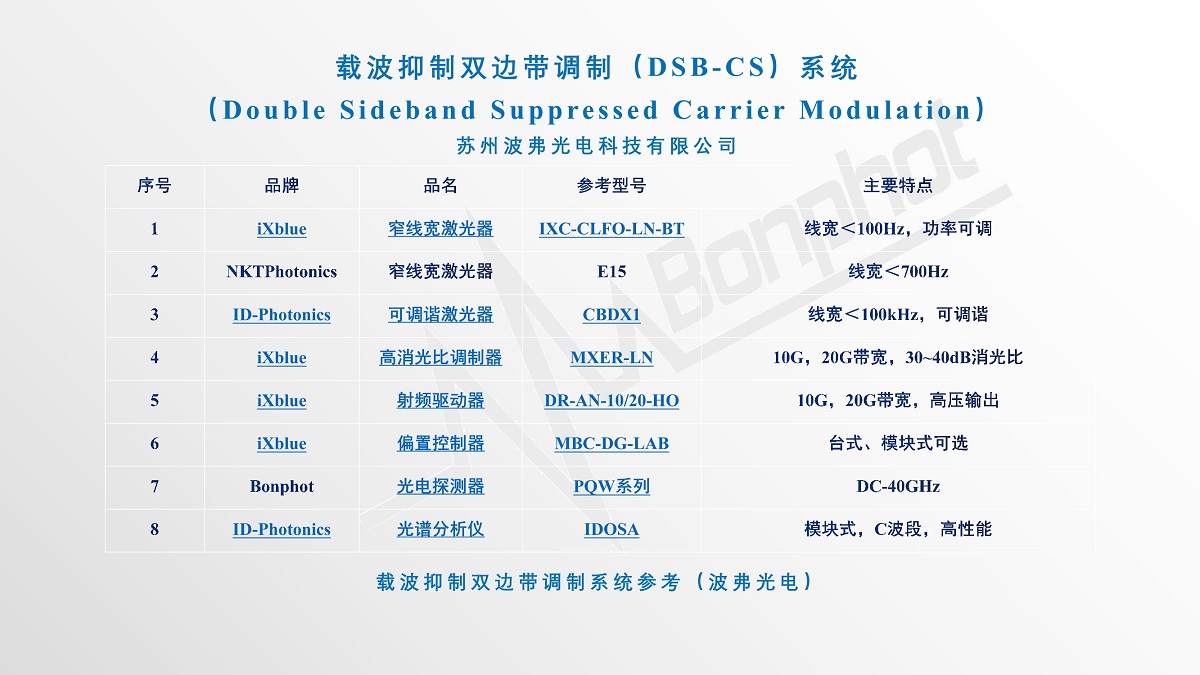 *双边带调制应用中,EOM的消光比决定了载波抑制比的上限,高消光比调制器能够更轻松的获得更高的抑制比、更高的对比度,苏州VSport-胜利科技有限公司提供的法国iXblue高消光比调制器MXER-LN系列,消光比30~+40dB,是市面上所能提供的单个强度调制器最高的消光比(不借助偏振器、偏置电压调谐等外部处理情况下),多种选择,满足不同指标要求。