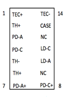 | 适合激光二极管类型 | 同轴TOSA/TO封装 | 14PIN 蝶形封装,2.54mm | 14PIN 蝶形封装,2.54mm |