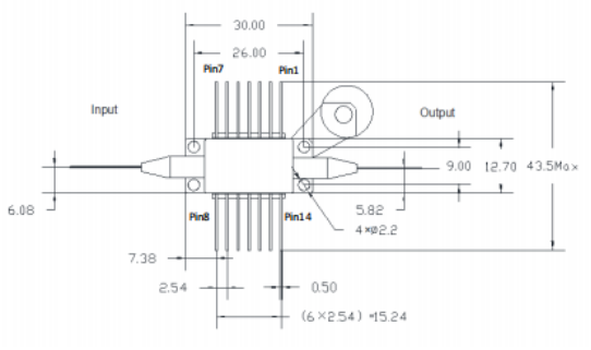 1310nm波段-16dBm饱和输出功率-25dB增益-蝶形封装-单模光纤-FC/APC接头 |